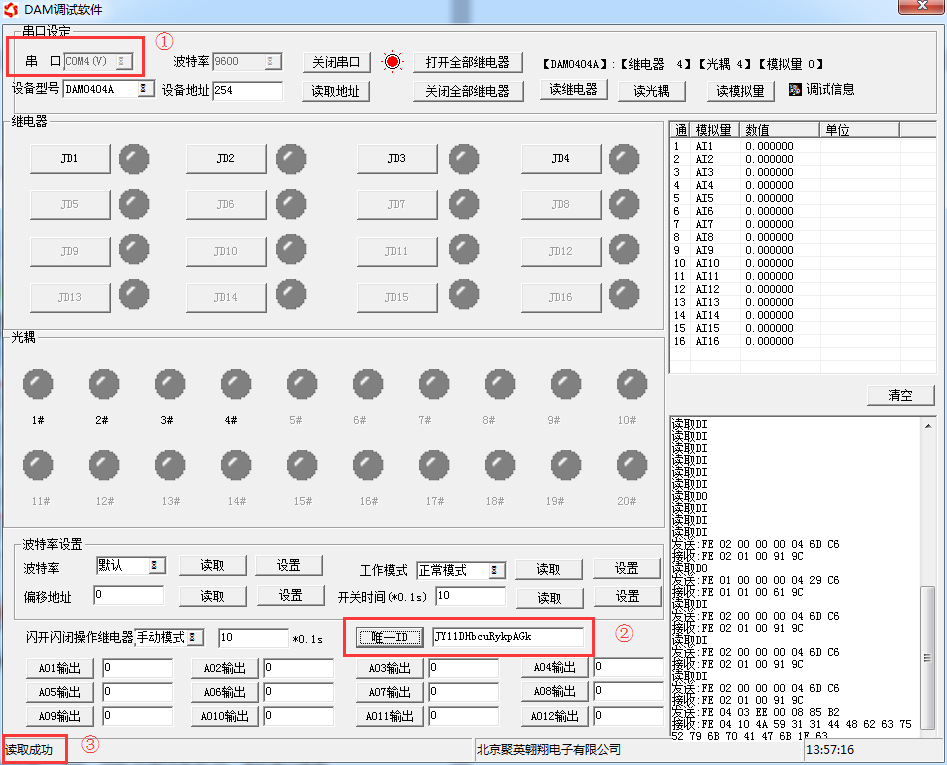,軟件底部提示讀取成功,即可獲取設備的唯一ID號,如下所示: