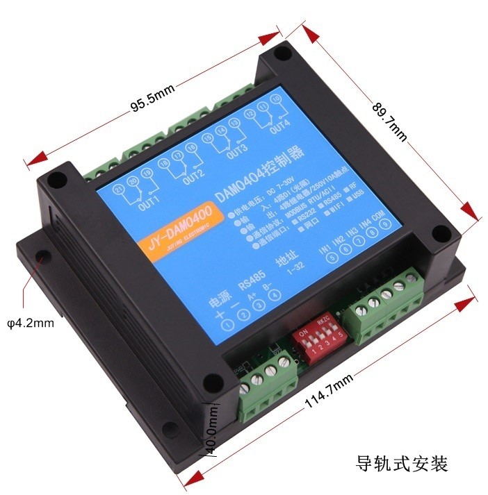 工業(yè)級(jí)繼電器控制板 4路繼電器輸出(DO)DAM0400,4路繼電器控制輸出,觸電隔離;支持RS232,隔離RS485通訊接口;標(biāo)準(zhǔn)Modbus協(xié)議,支持Modbus RTU/ASCII;支持點(diǎn)動(dòng)輸出;提供配套控制軟件;支持二次開發(fā)。應(yīng)用于智能家居、用水管理、...