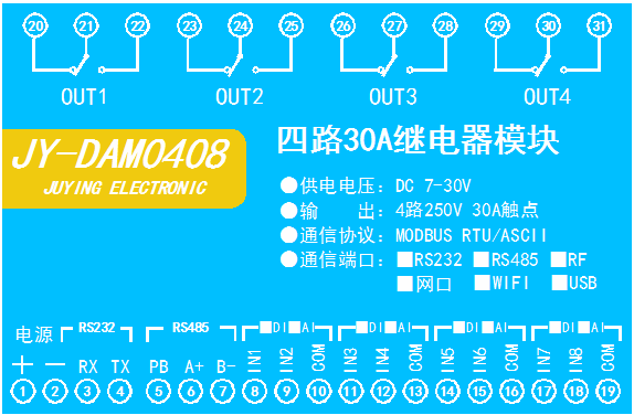 功能說明:4DO+5DI+5AI