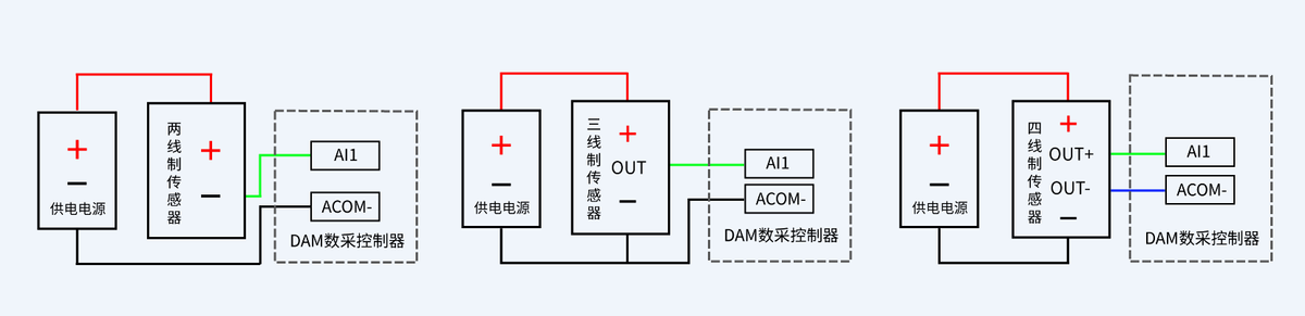 下圖中的電源部分為傳感器供電,IN1-IN12接傳感器信號正,COM為傳感器信號負。