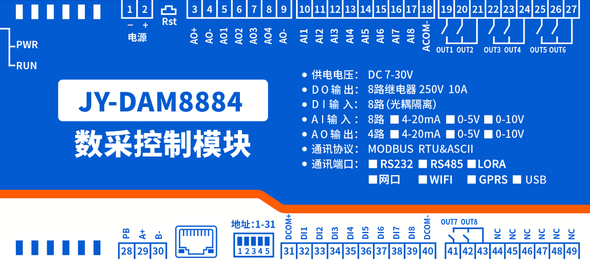 功能說(shuō)明:2DO+8AI+8AO+12PT