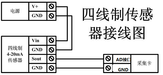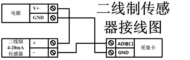 下圖中采集卡中的AD接口指AI_1-AI_8,GND指COM-。